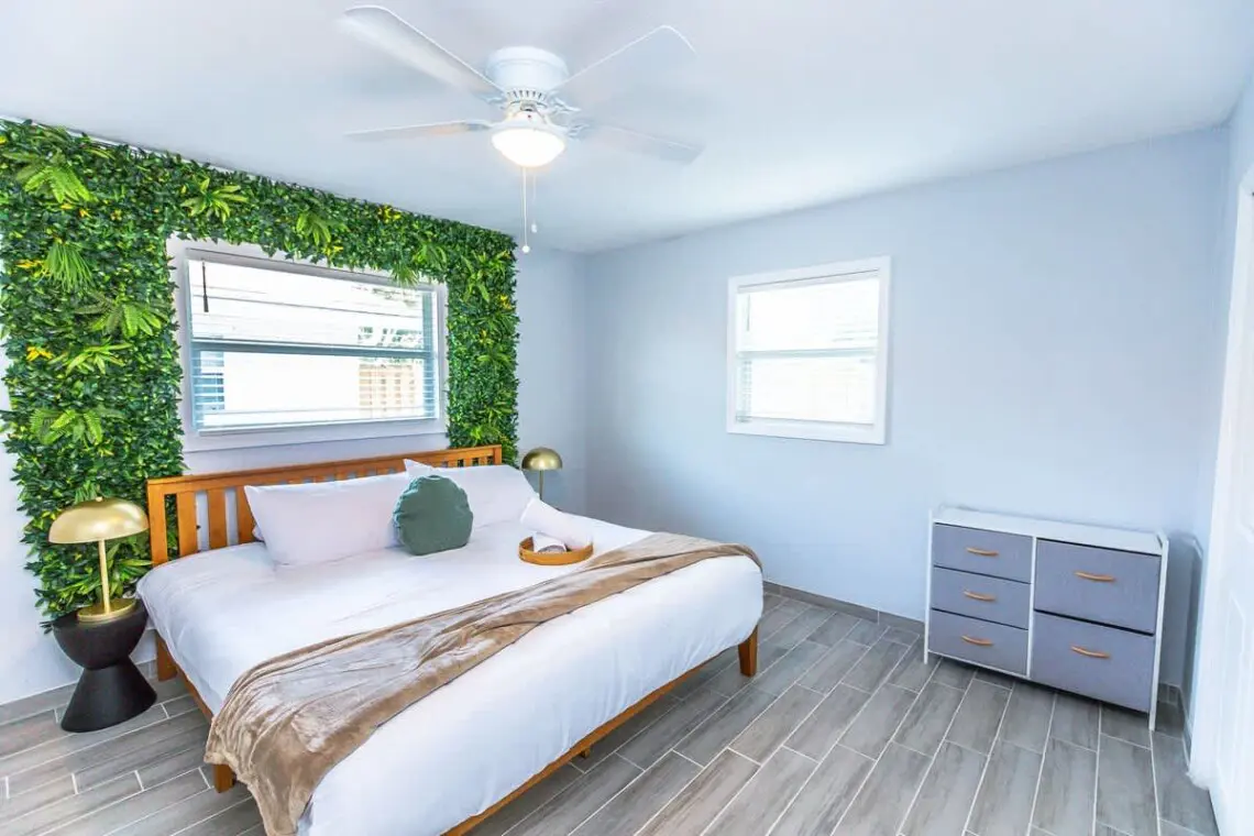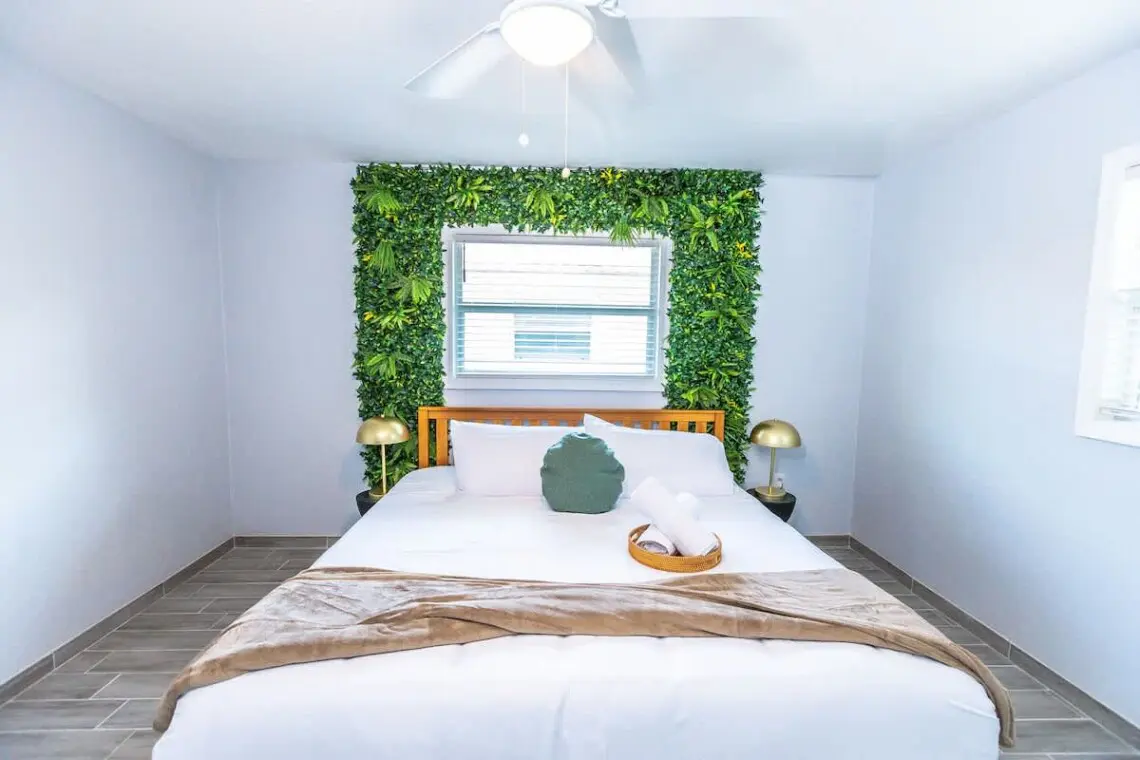 Imagine a cozy, modern 2-bedroom house with a unique touch of nature—an accent grass wall.